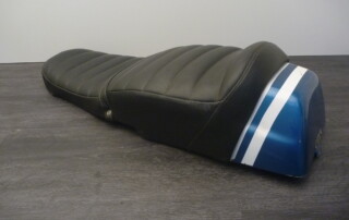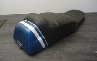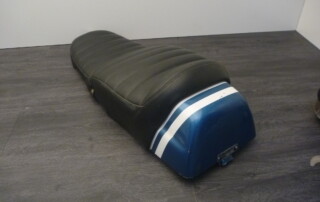 Rare BMW 75/5 seat for short swing arm with railing. Plate and foam core in good condition, no rust through, no dilapidated sheet metal. With original chrome railing and type plate. Cover has flaws and an adhesive spot – front, sides and lower edges. Ideal basis for a new cover. Original part, not a replica! Numerous other bench seats available for various models. We have numerous used parts in stock. We can also procure many new parts. Please just mail or call us!