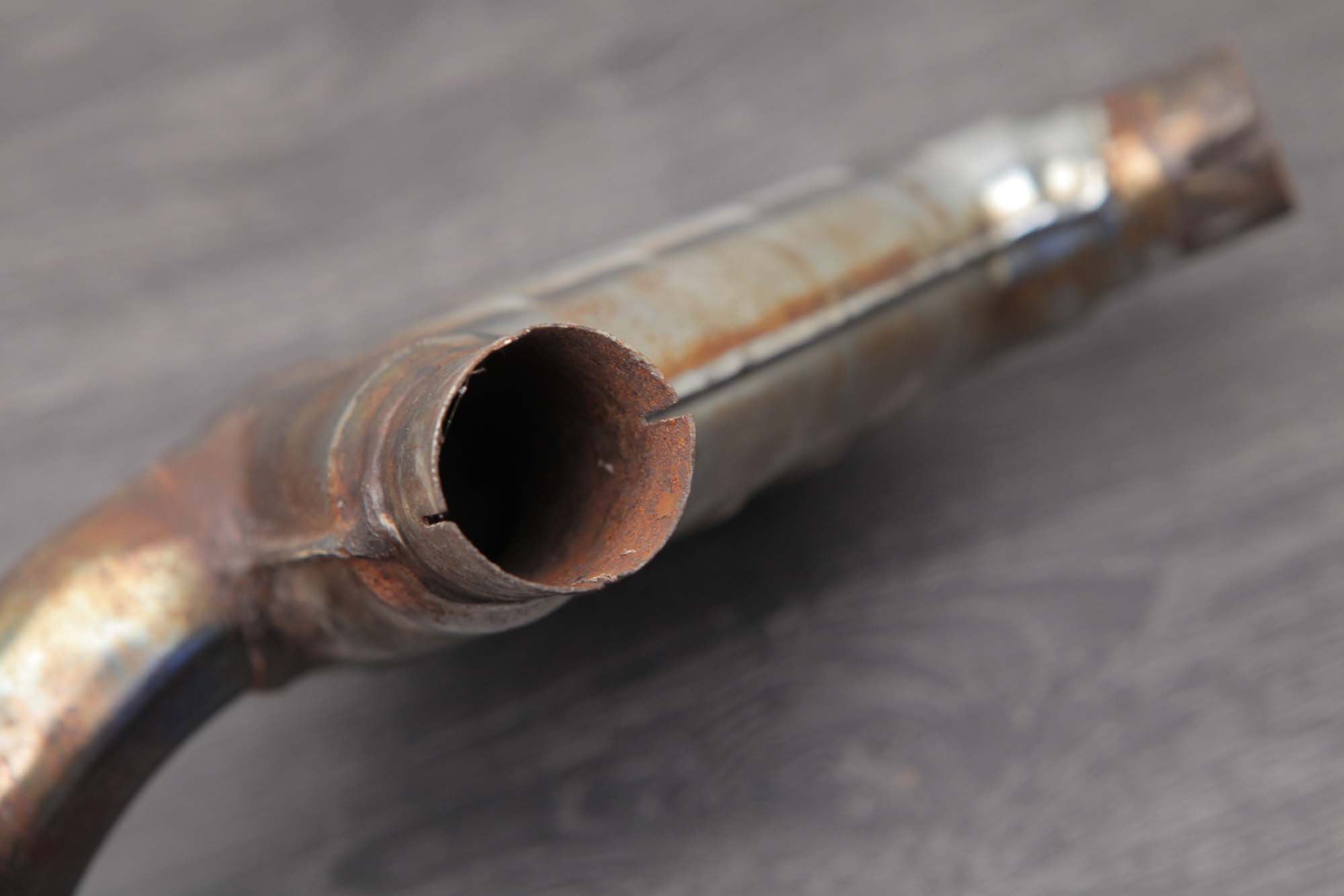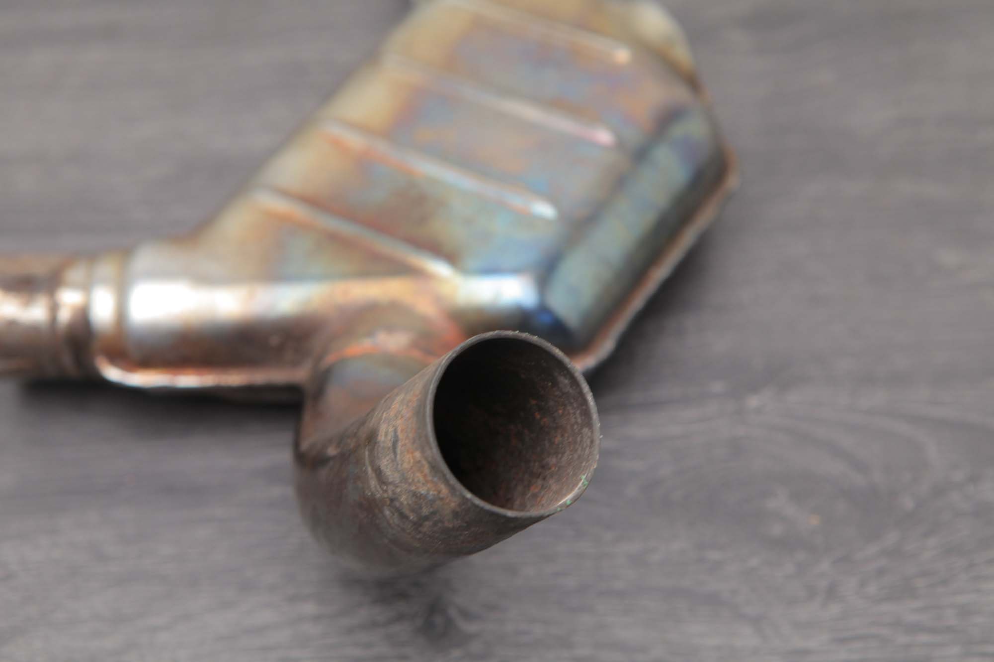 Silenziatore anteriore cromato, proprio come dovrebbe essere su una 80 ST. Parte originale BMW, non una riproduzione a basso costo