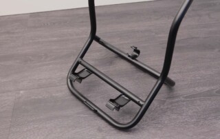 Bij de vroege G/S-modellen was slechts één (witte) koffer bedoeld voor de rechterkant, daarom heeft dit bagagerek geen nokje voor de bevestiging van het linker bagagerek. Moeilijk te vinden in deze staat.
