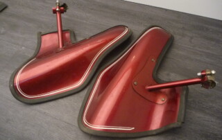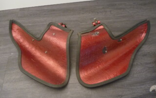 Gebrauchte Beinschilder passend für die Serientanks. Modell 115a. Zeitgenössisches hochwertiges Zubehör ohne Schäden. Guter Wind und Wetterschutz. Inklusive der Halteschellen. Kleine Lackschäden vorhanden, siehe Fotos.