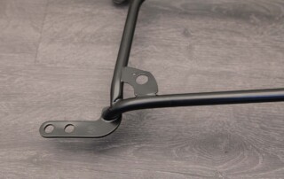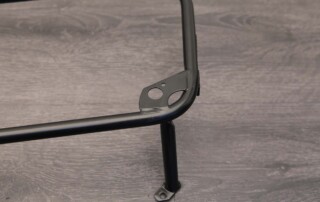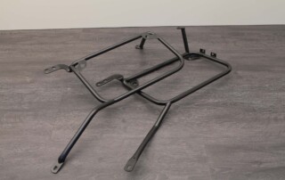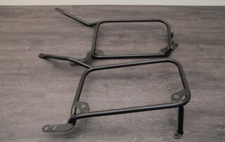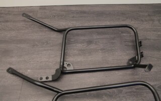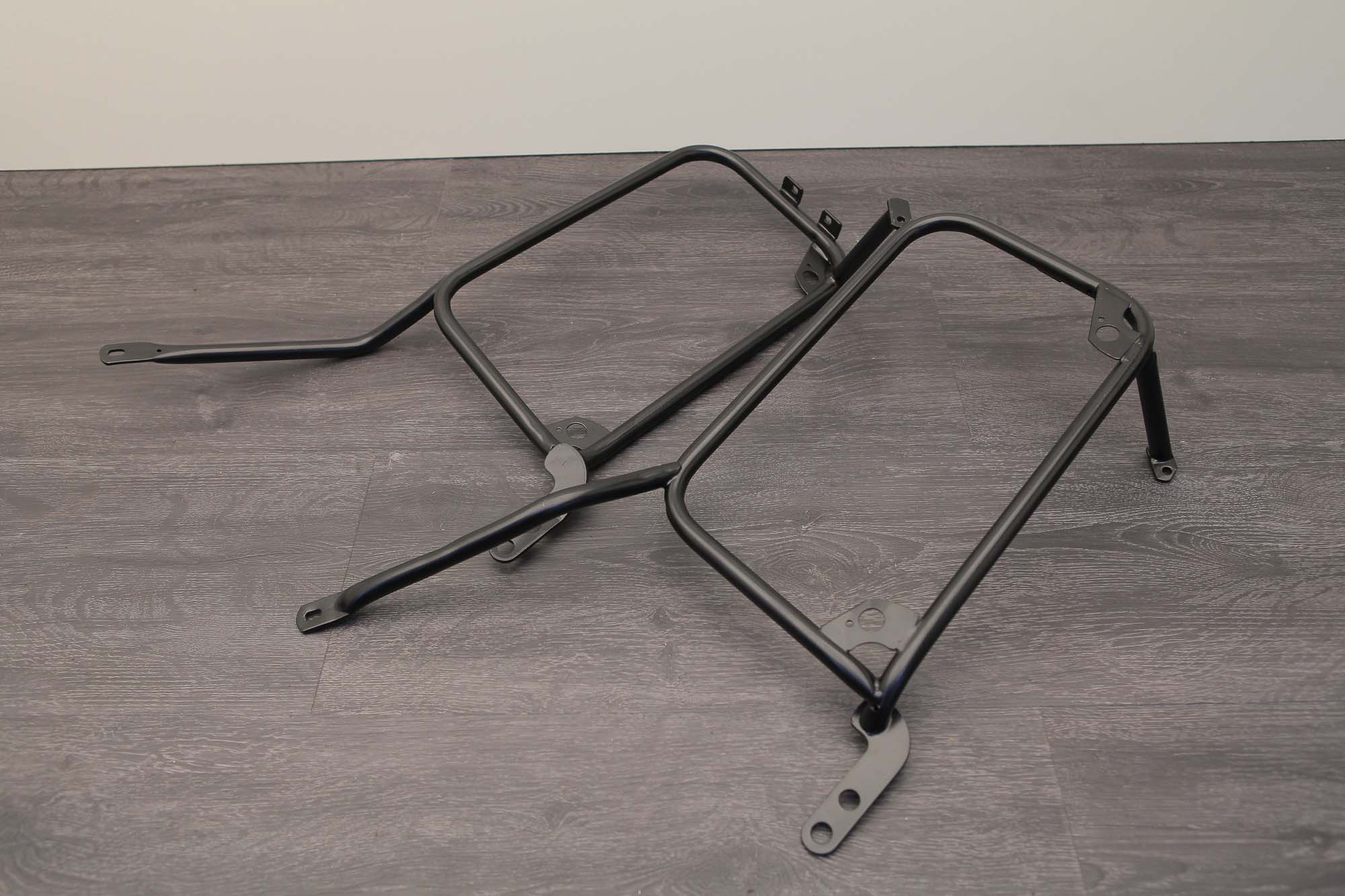 Originale, neu professionell pulverbeschichtete, symmetrische, schwarze Kofferträger für die R 100 S. Sehr guter Zustand. Frühe Ausführung ohne die hässlichen Halterungen für die mittlere Gepäckbrücke. Passt auch an die /6, 90S und /7. Teilenummer: 46541239489. Bei BMW nicht mehr erhältlich