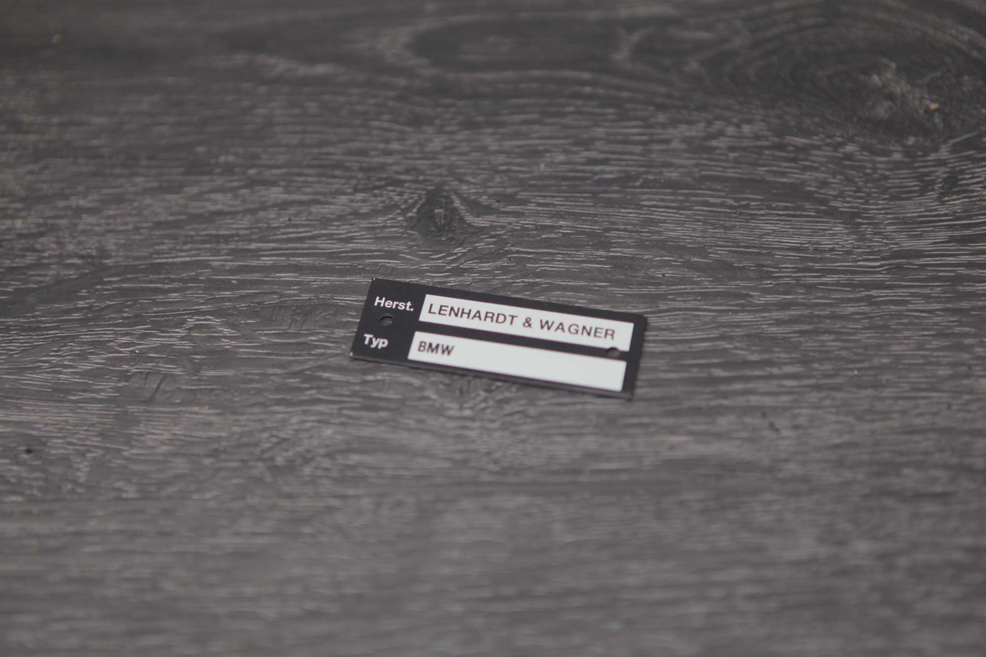 Typenschild für Lenhardt & Wagner 2-in-1-Auspuffanlage, entpricht dem originalen Typenschild.